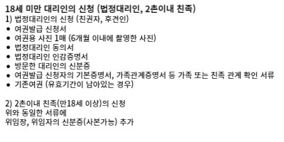 2. 18세 미만 미성년자의 여권 재발급 신청 서류