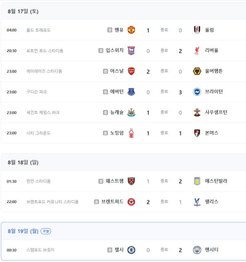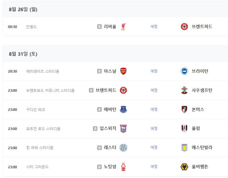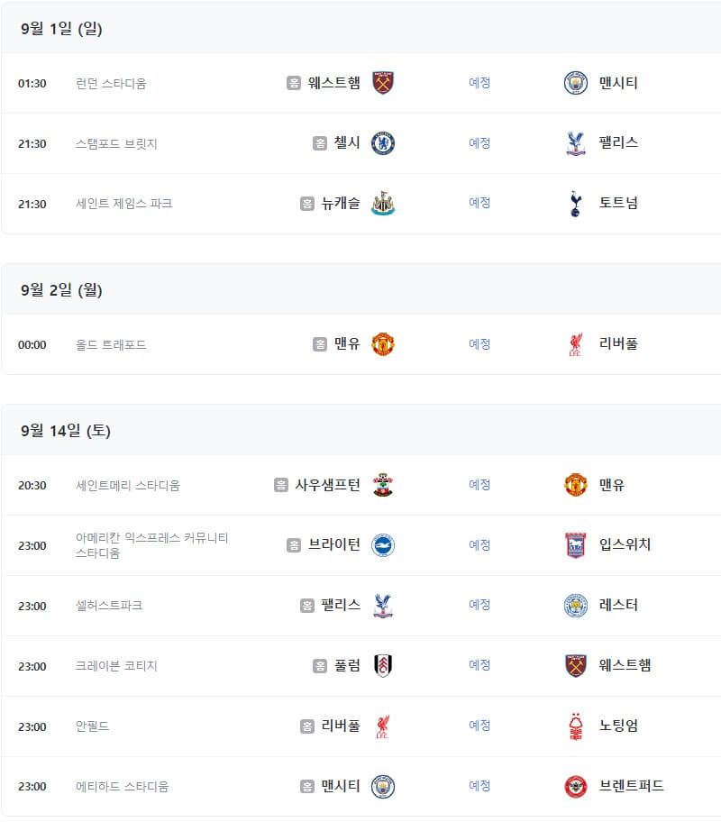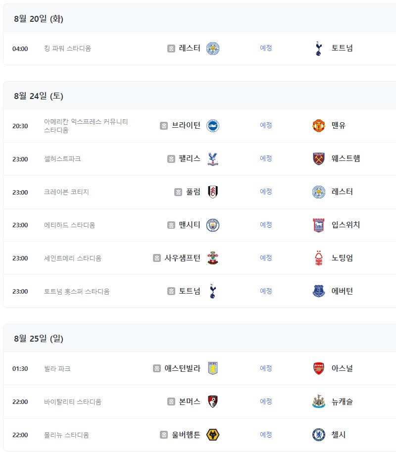 프리미어리그 이번 시즌은 2024년 8월 16일부터 2025년 5월 25일까지 진행됩니다.
